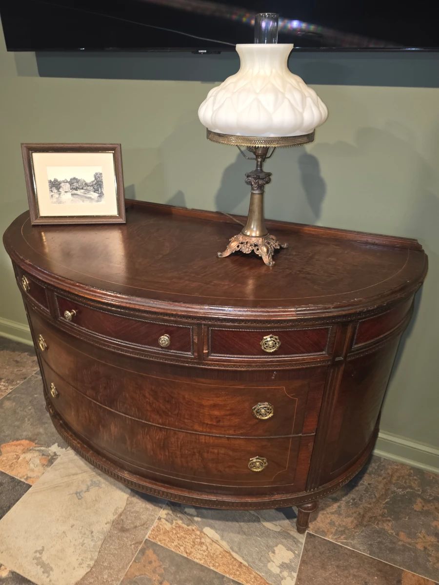 There are absolutely no returns of any merchandise for any reason. Things are being sold as is, where is. Due to the nature of the age of the pieces in this collection, any possible wear associated with age has been considered into prices of said pieces. No large bags will be allowed. In the event of inclement weather shoes will be removed upon entering the residence.