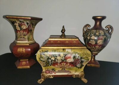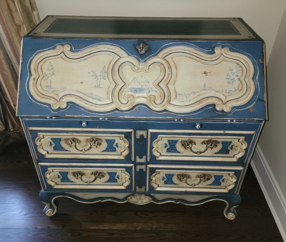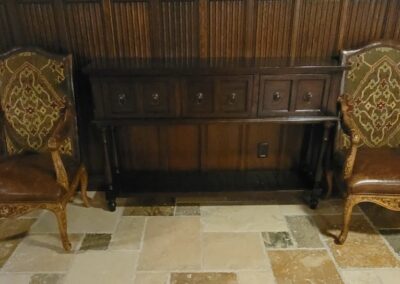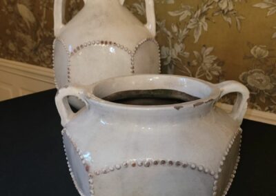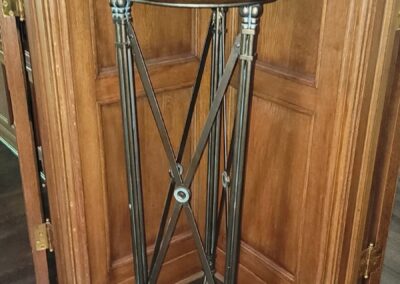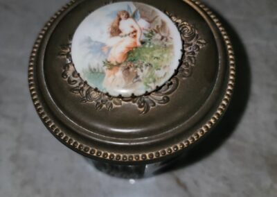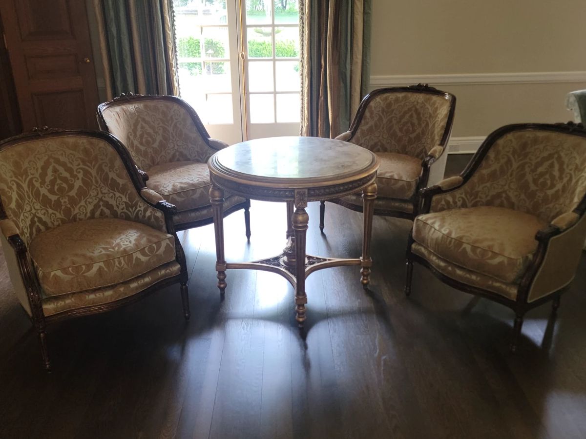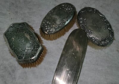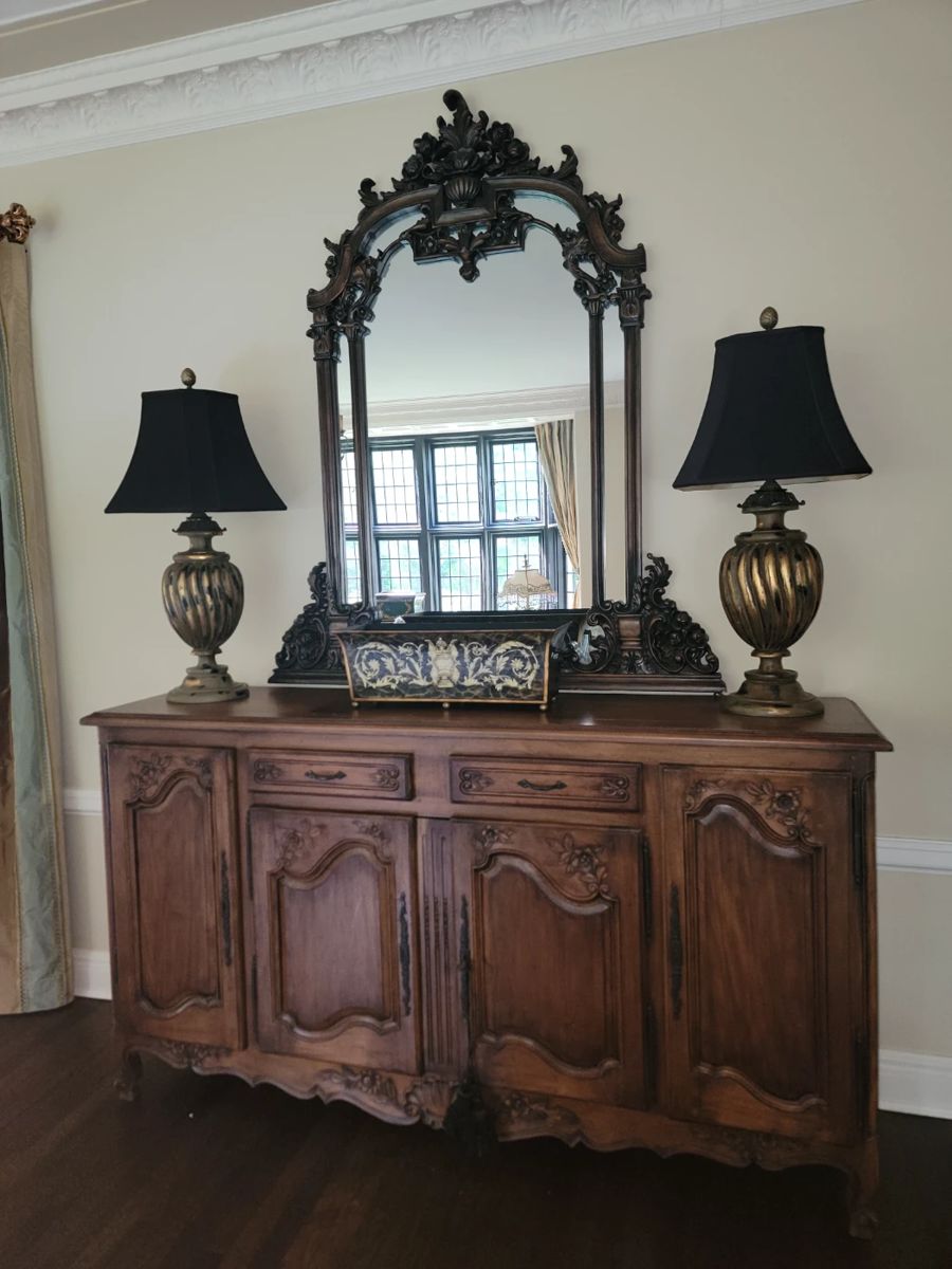 There are absolutely no returns of any merchandise for any reason. Things are being sold as is, where is. Due to the nature of the age of the pieces in this collection, any possible wear associated with age has been considered into prices of said pieces. No large bags will be allowed. In the event of inclement weather shoes will be removed upon entering the residence.