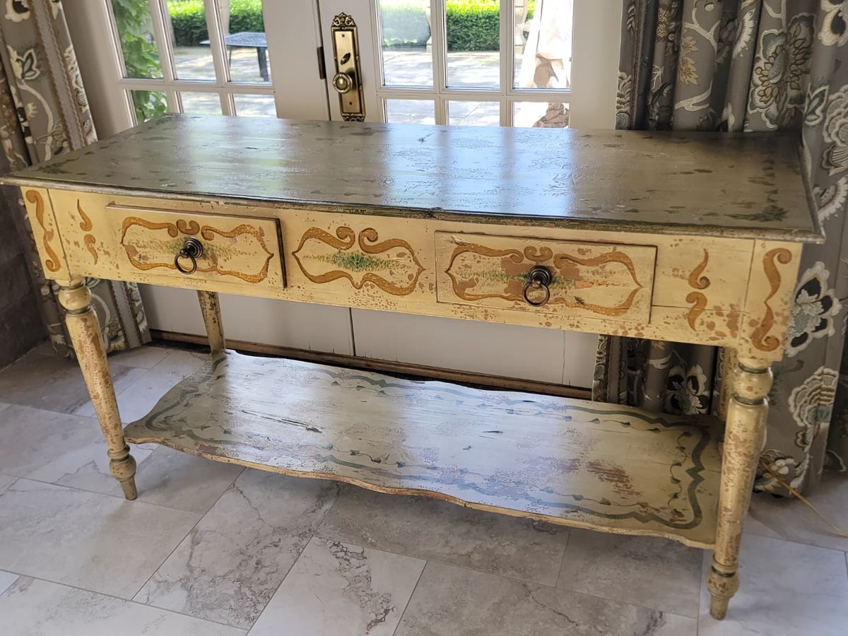 Collection to include: Baker, Harden, Henredon, Works of Art, Fine Rugs, Antique Furnishings, French Mirrors, Pillows of Fine Textiles, French Marble Top Table, Sideboards, Wonderful Lighting, Garden Elements, Books, Costume Jewels, Decorative Arts, Majolica, Bolts of High End Fabric, Holiday, Stoneware, Evening Bags, Patio Furniture, Teak Table and Benches, Frontgate, Large Hand Pained Banners, Much Much More……